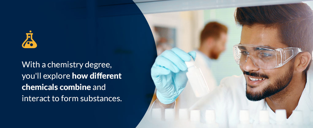 - Chemistry: Many say chemistry is the study of the building blocks of life because chemicals make up everything we interact with. With a chemistry degree, you’ll explore how different chemicals combine and interact to form substances. This degree will also give you the foundational skills for a material scientist career by developing skills in following the scientific method, complying with laboratory safety protocols and organizing scientific data.